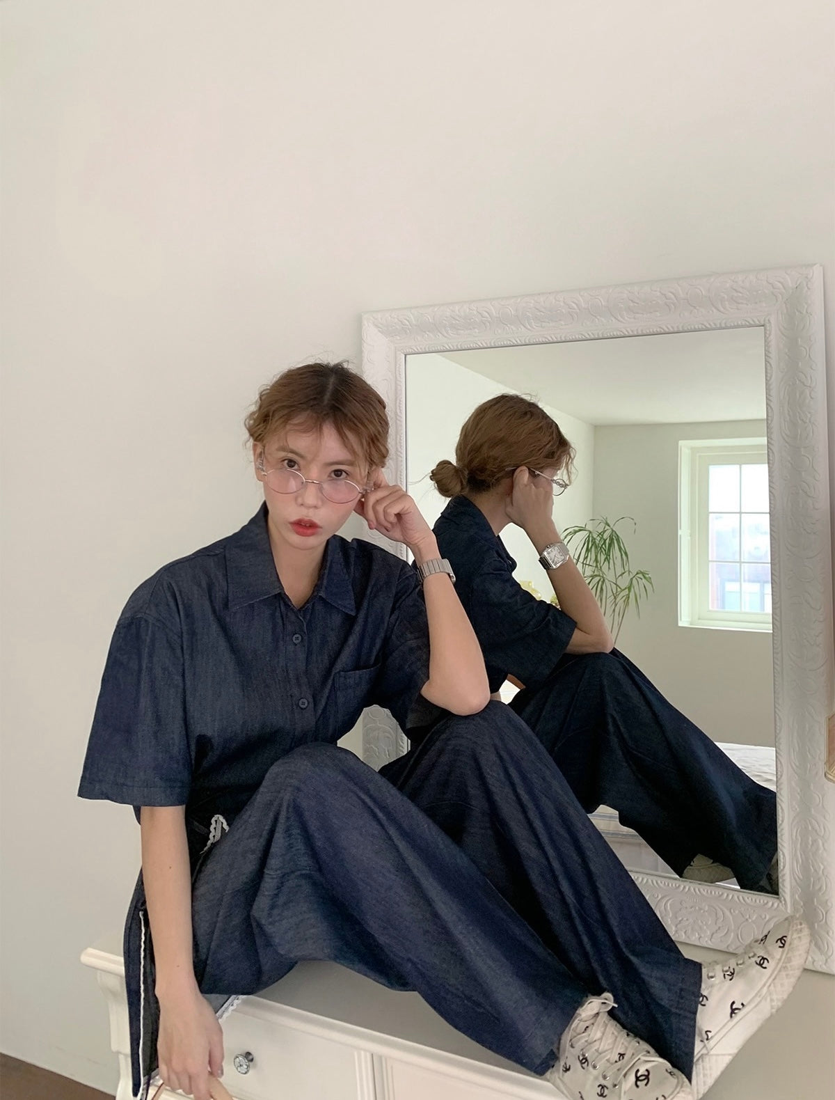 Size:Free Size 恤衫上圍 120cm衣長 52cm闊腿褲腰圍 64cm(鬆緊腰)褲長 103cm