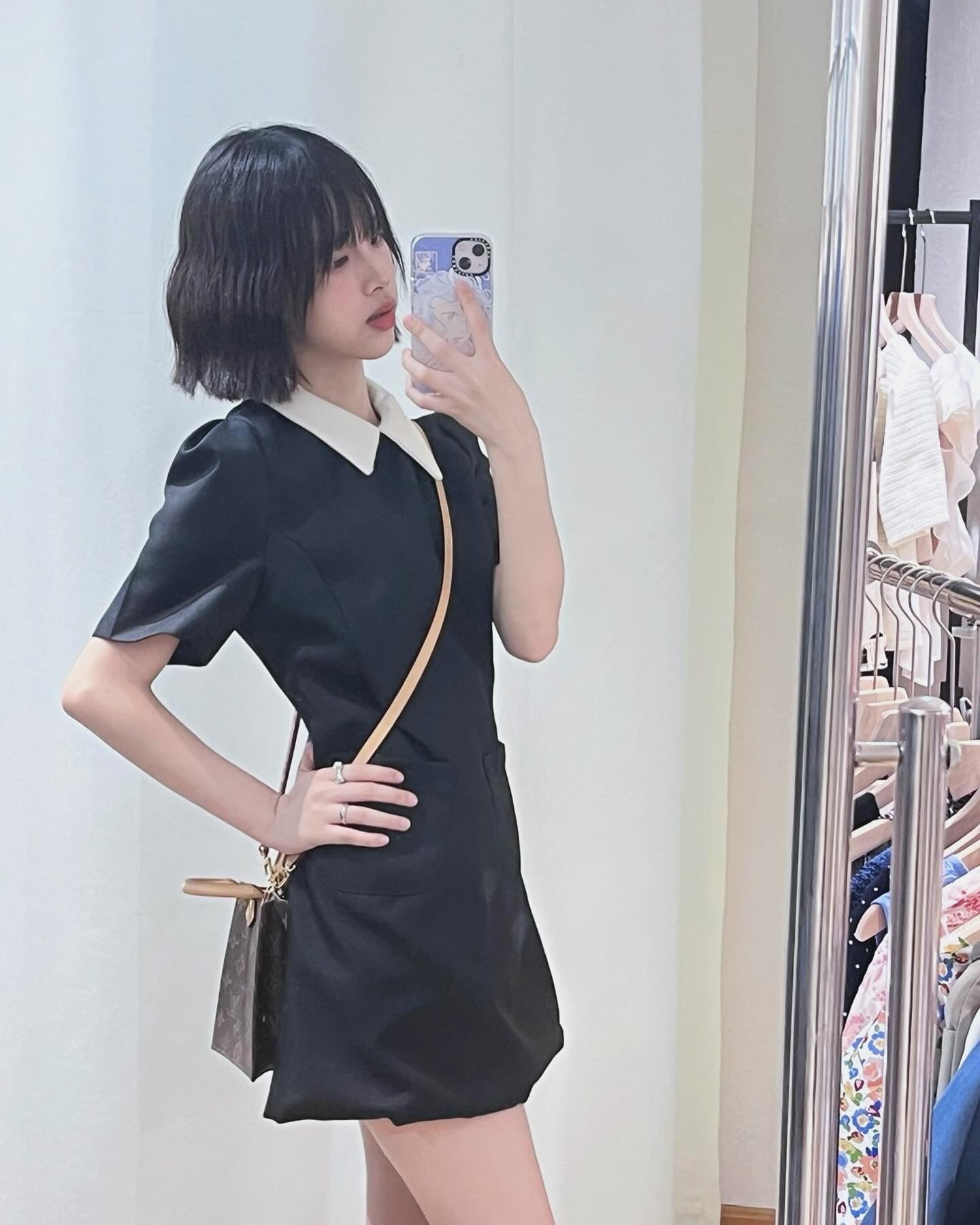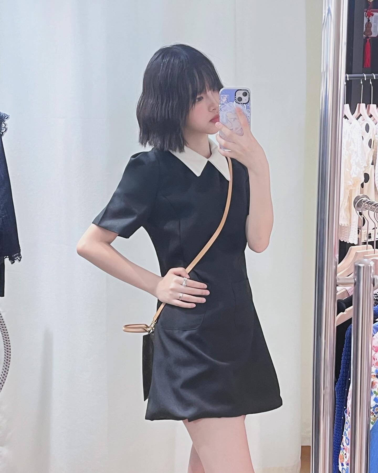 黑白經典撞色Polo領有口袋!!可以裝嘢✌️A字版型🤍復古小香氣質🪞滌綸布料