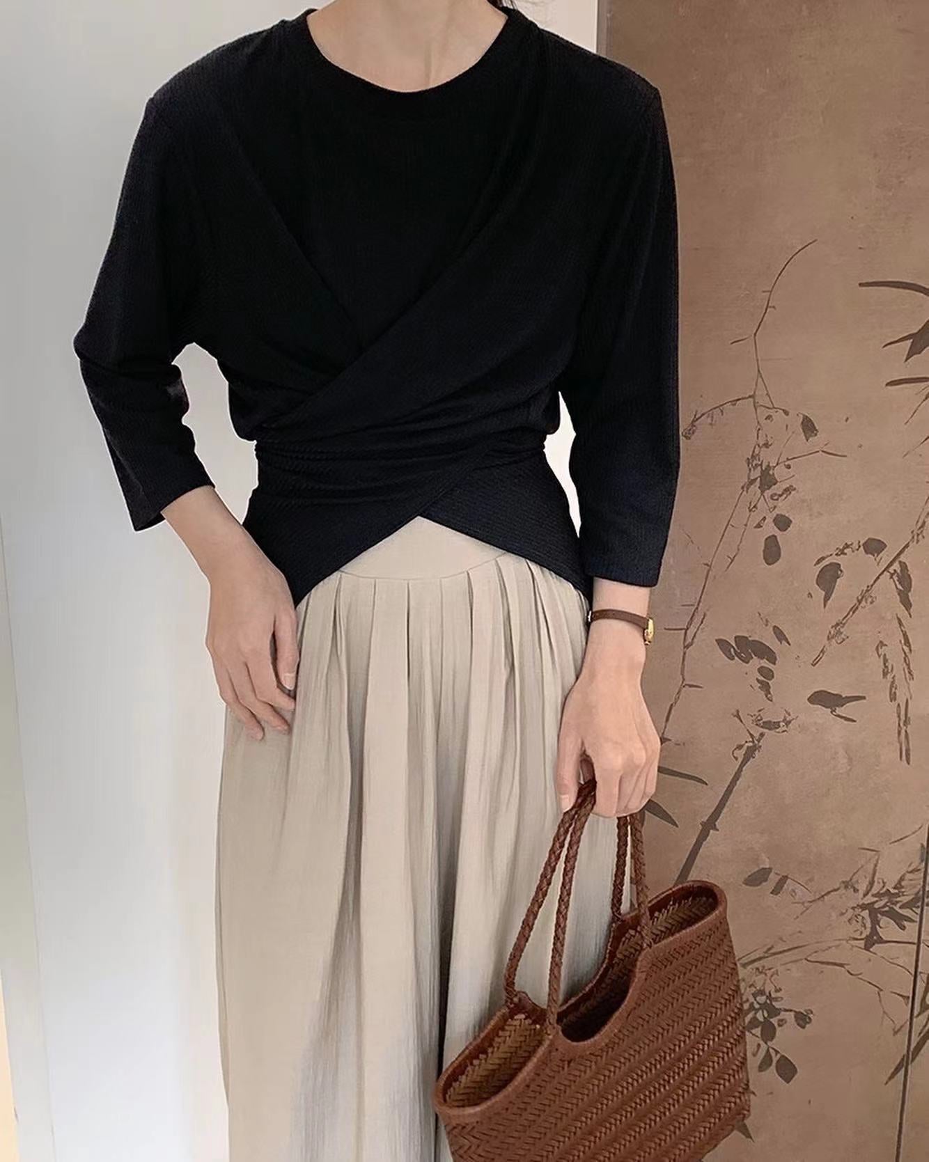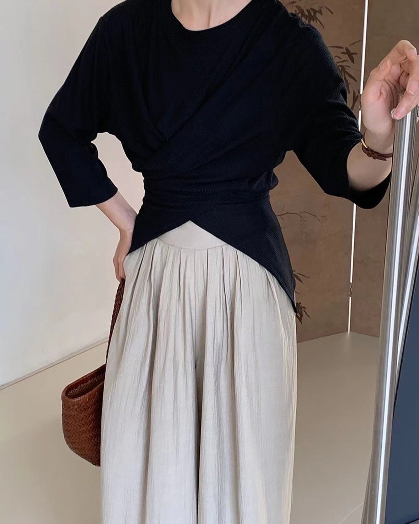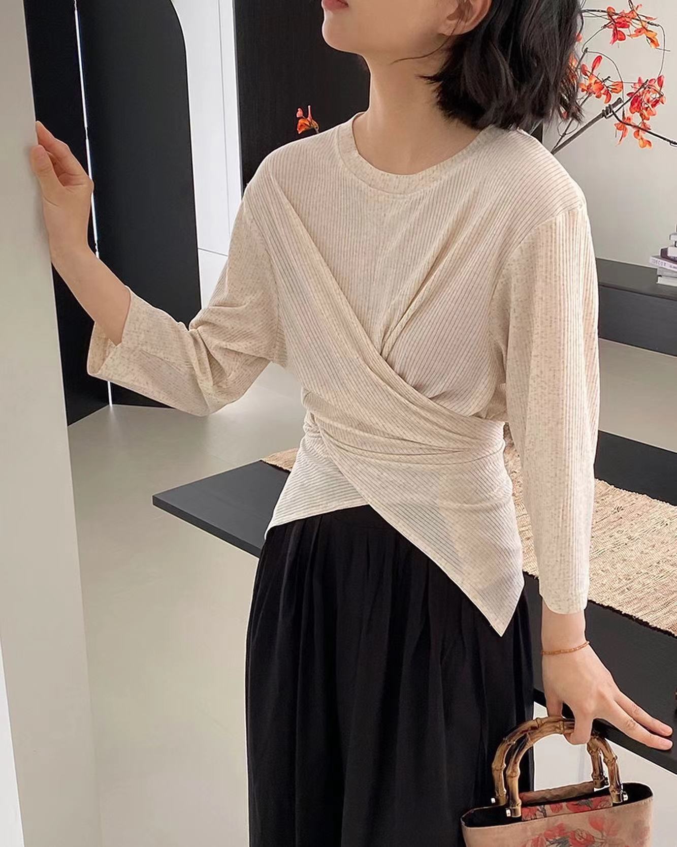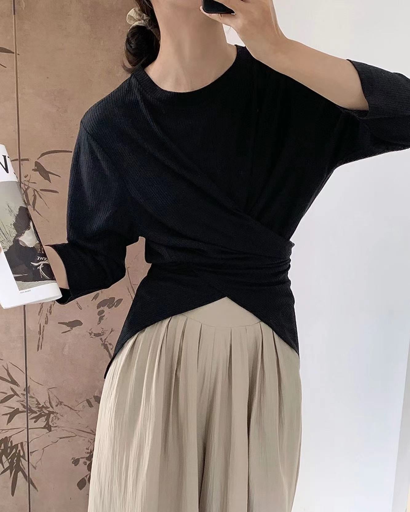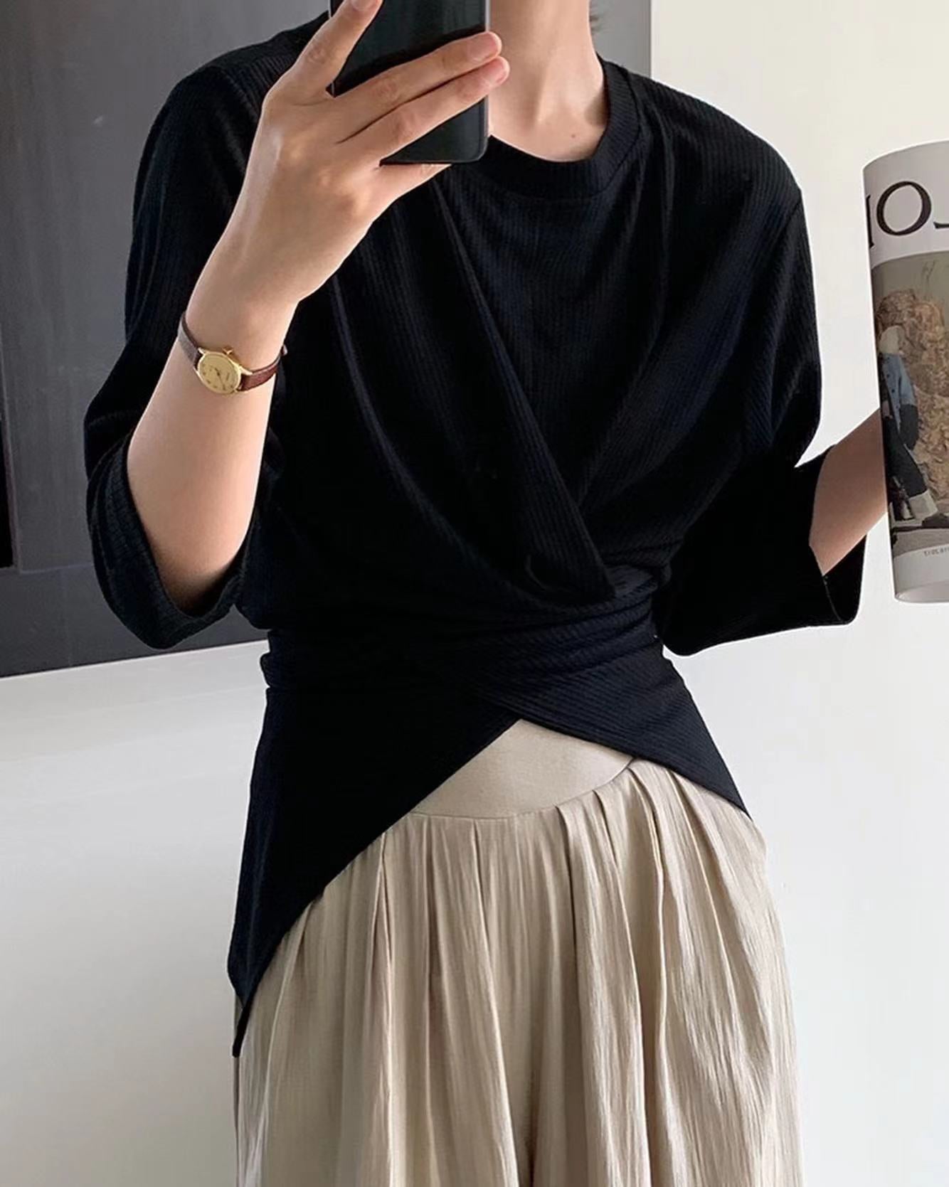七分袖不規則收腰上衣