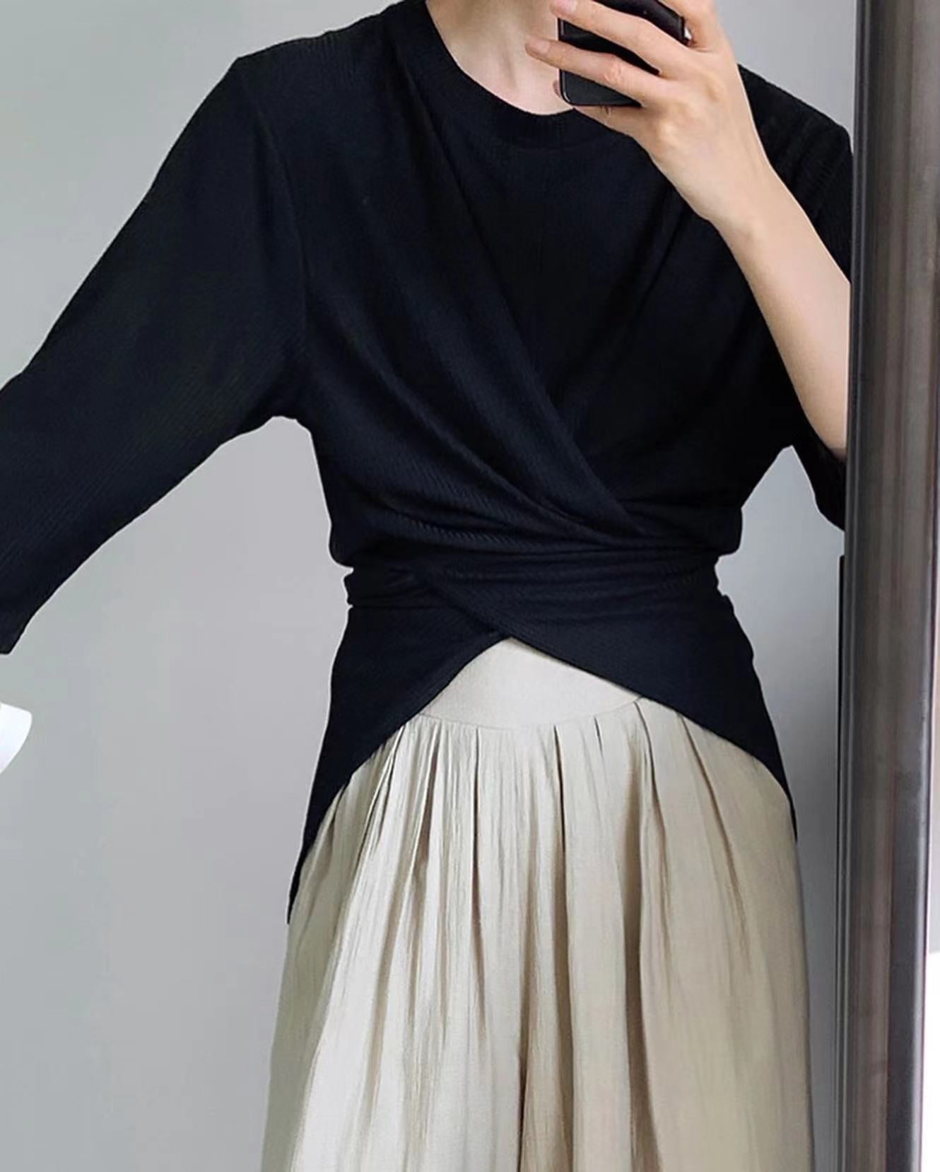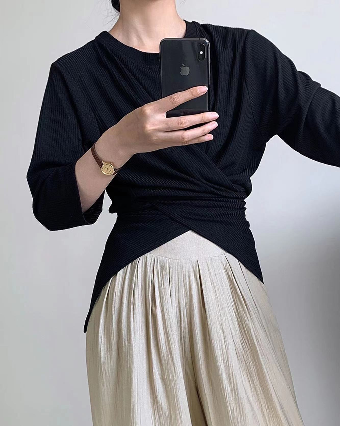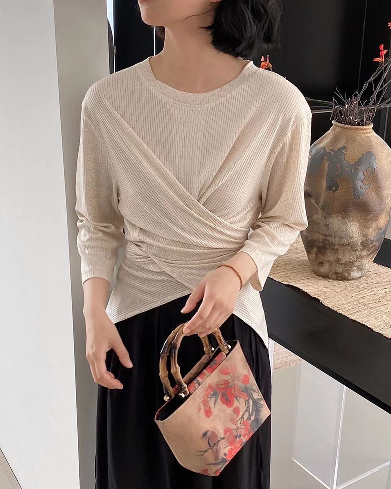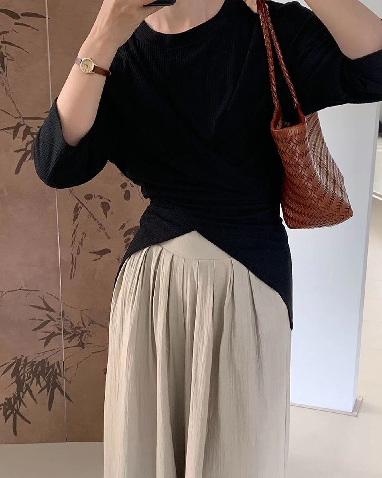 七分袖不規則收腰上衣