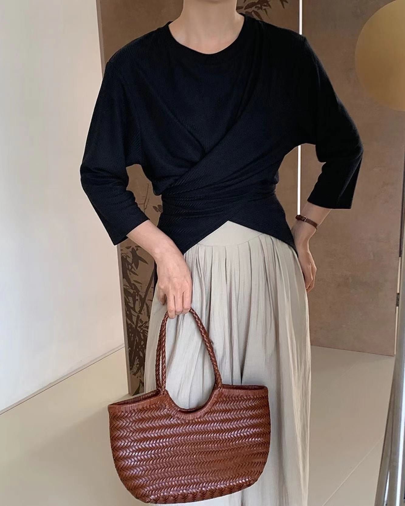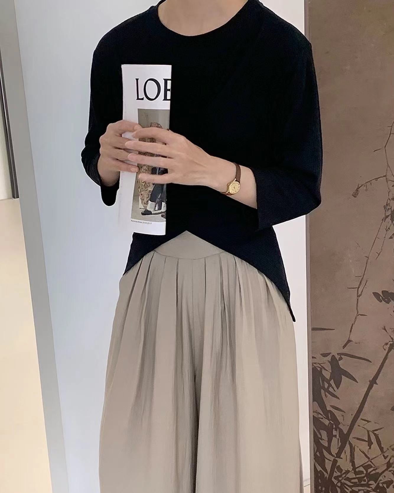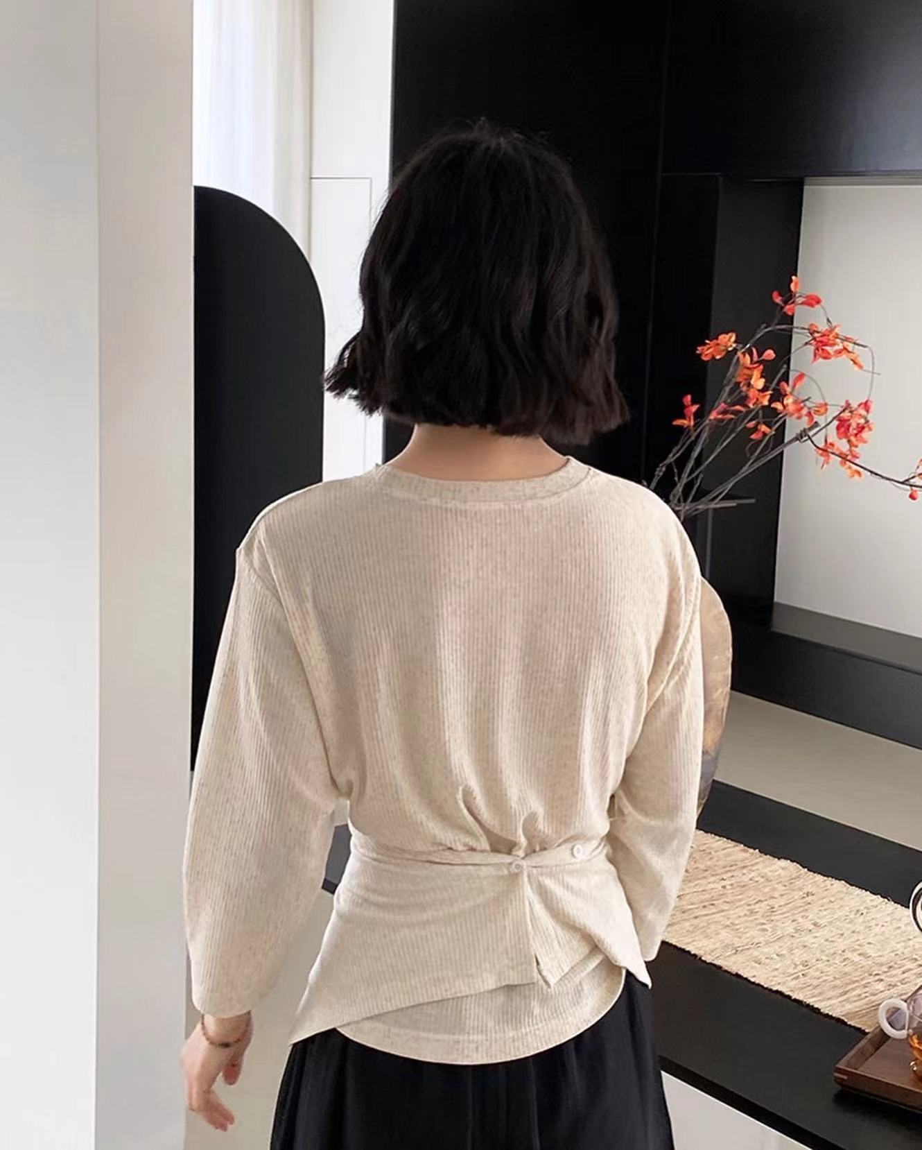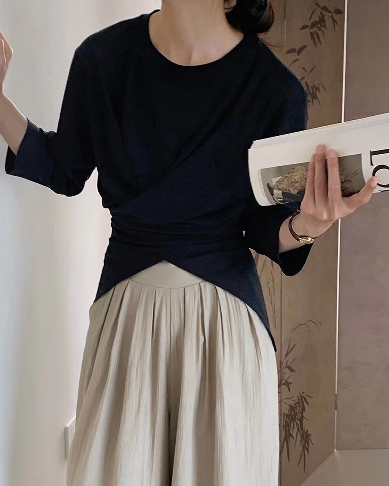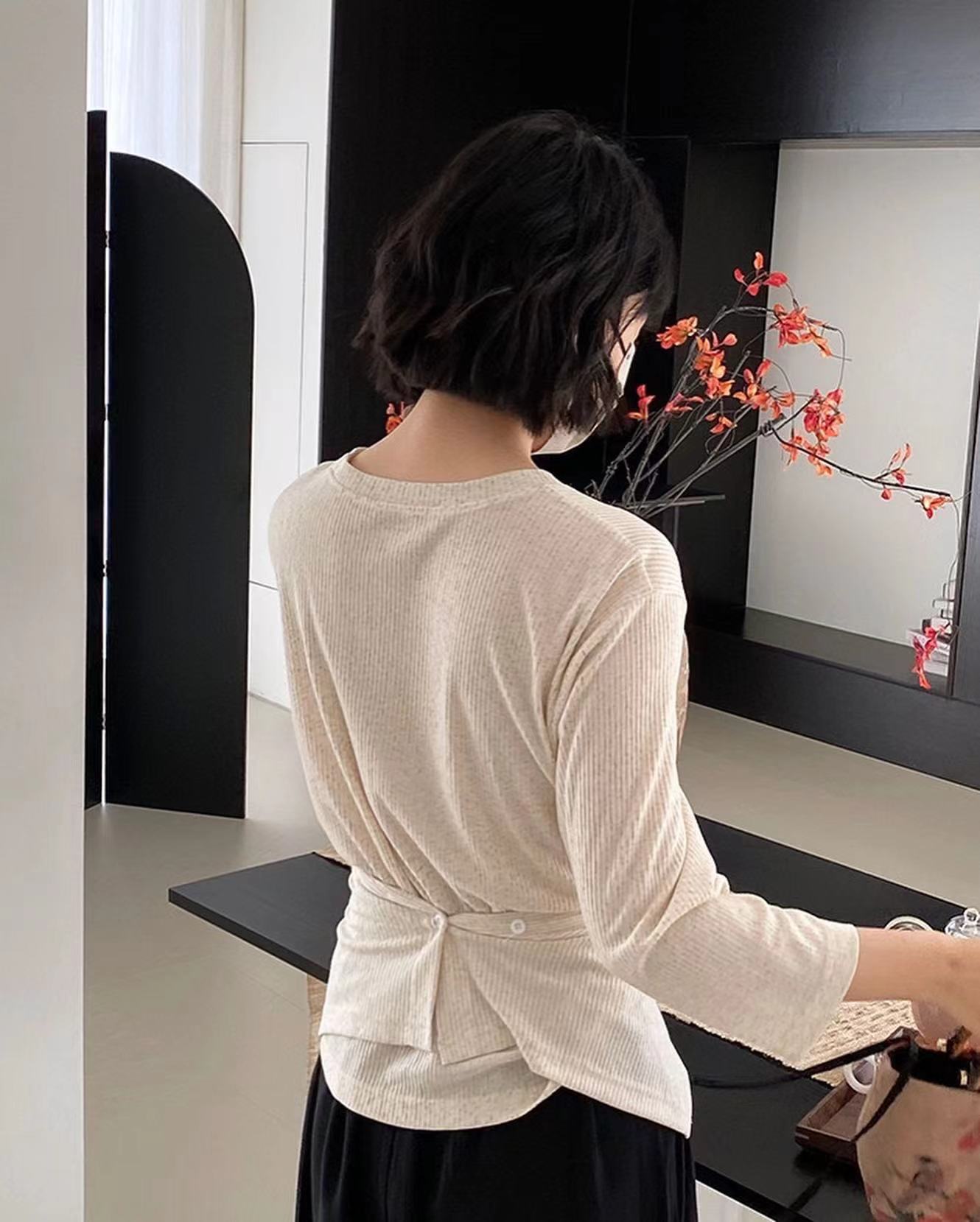 七分袖不規則收腰上衣